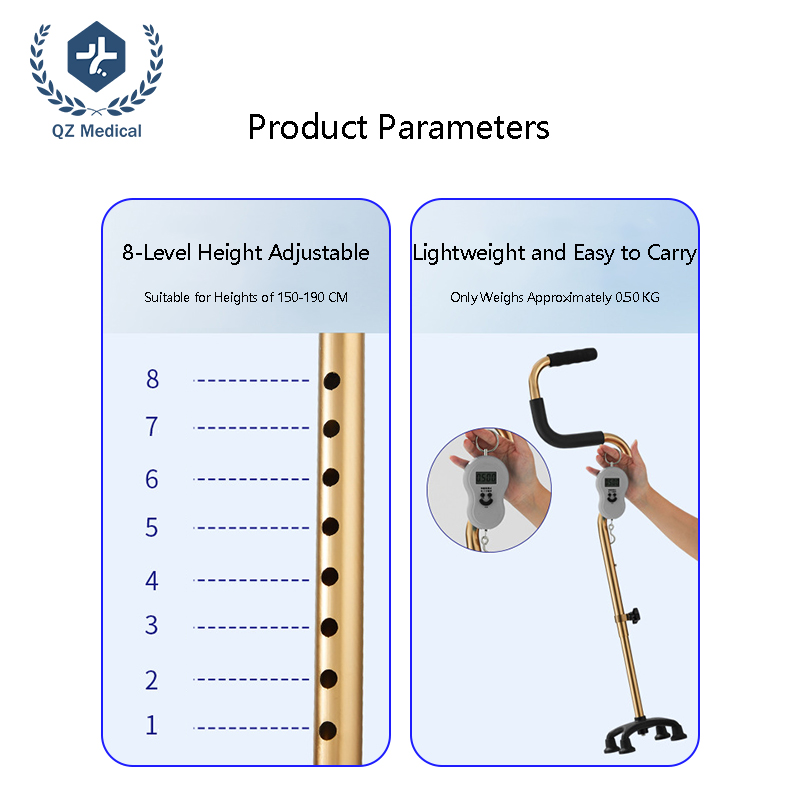For elderly users, the lightweight design (0.5kg) enables spontaneous outings. Non-slip rubber base ensures safety on wet tiles or gravel paths. Gold/silver colors blend with home aesthetics—no "medical device" stigma. Users report 92% increased confidence in walking (2024 survey).