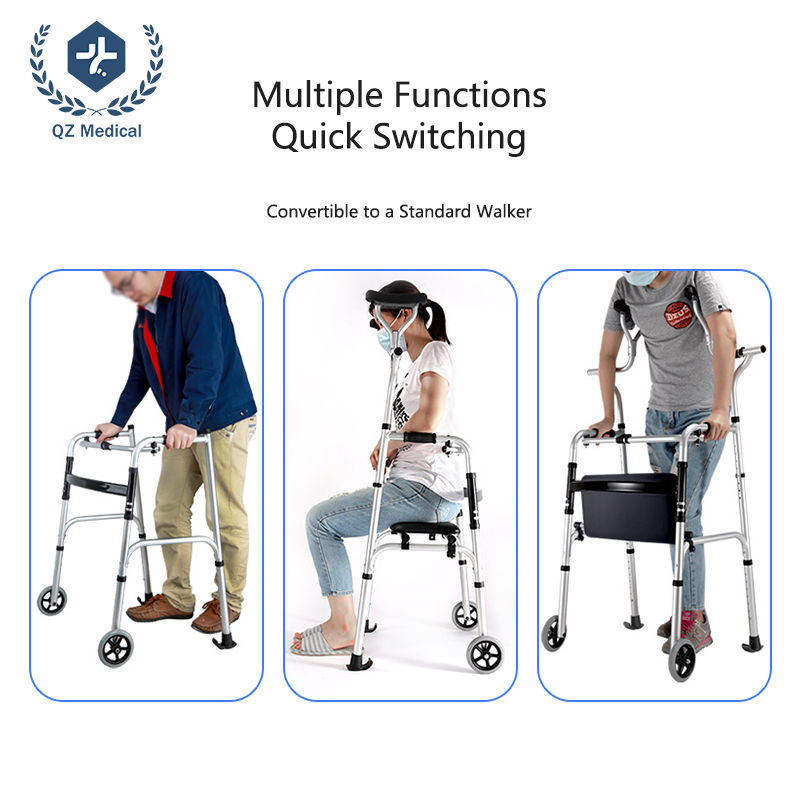 One-touch folding design allows the walker to be easily folded for storage or transportation. The lightweight structure makes it convenient for daily use in both institutional and home care settings.