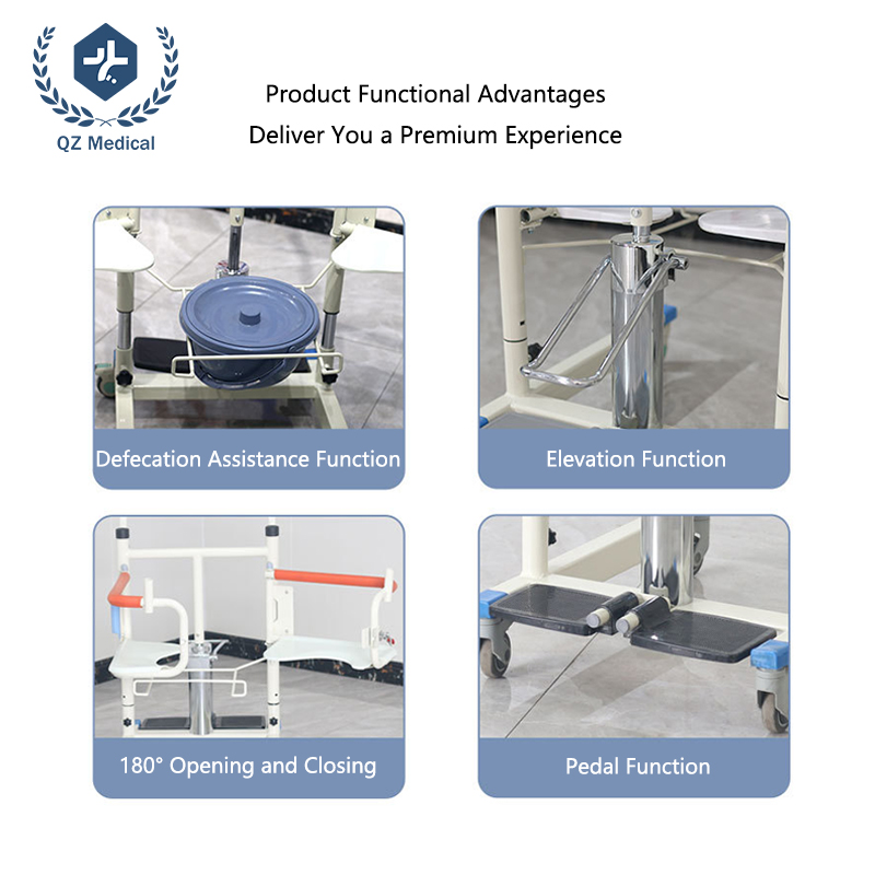 A: It is suitable for elderly users and long-term bedridden patients who require assisted transfer and toileting.