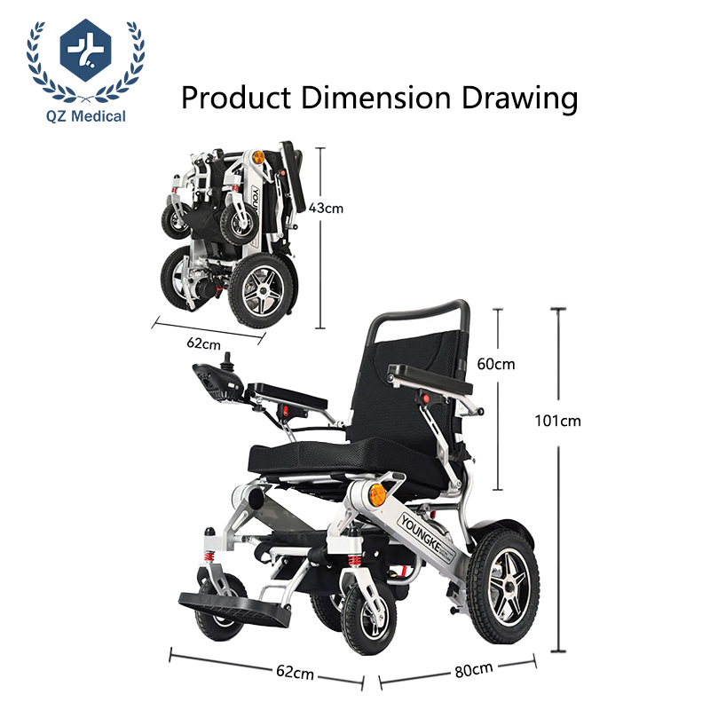 The compact folding design allows the wheelchair to be stored easily in car trunks or transported during travel. The lithium battery meets airline transportation standards, making it suitable for air travel and public transportation.