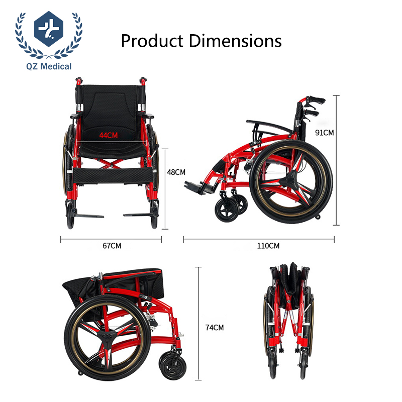 The wheelchair supports both self-propulsion and caregiver-assisted pushing. Hand rims allow users to exercise upper limb strength, while the ergonomic push handles with integrated brakes reduce caregiver effort.