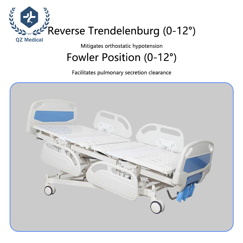 The bed supports controlled forward and backward tilt, assisting caregivers with repositioning, pressure relief, and special nursing procedures.