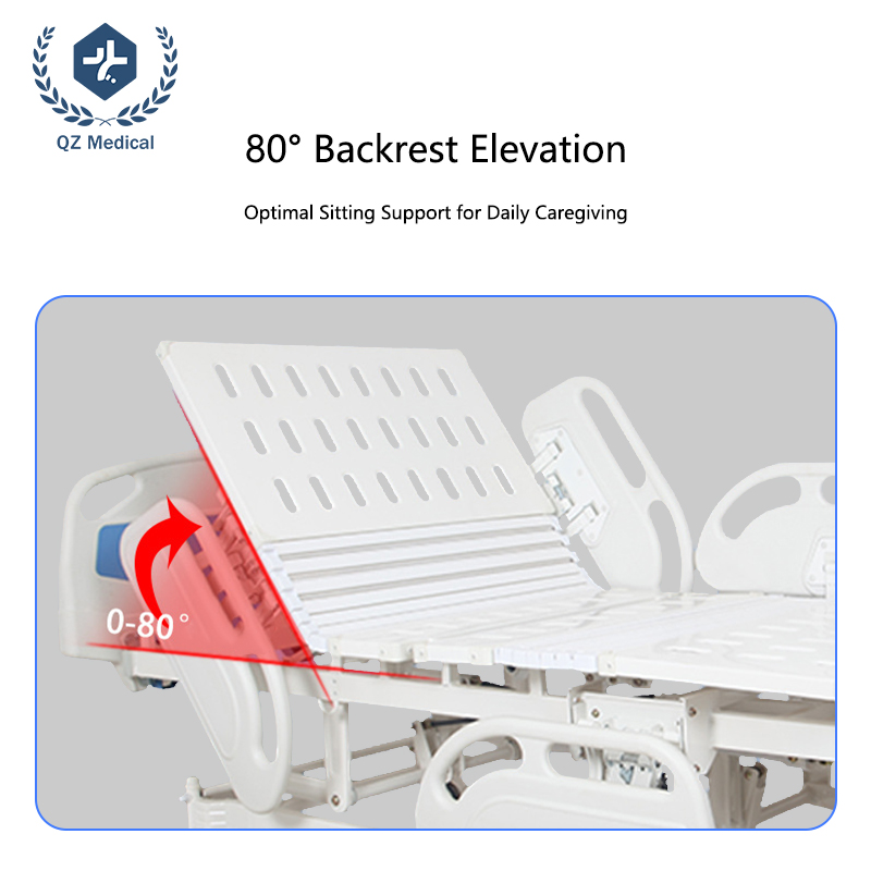 The backrest can be adjusted from 0 to 80 degrees, enabling patients to sit up comfortably for meals, communication, and daily care while reducing pressure on the back.