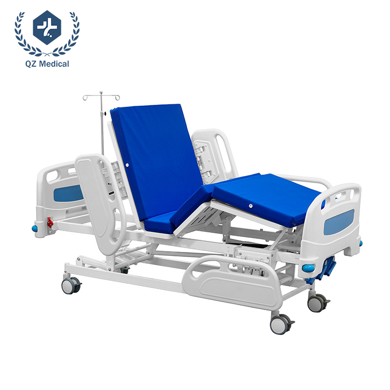The bed frame is constructed from powder-coated steel for strength and corrosion resistance. ABS headboard and footboard panels are durable, impact-resistant, and easy to clean, making them suitable for medical environments.