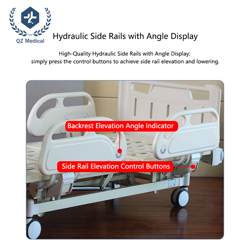 A: Yes. Hydraulic side rails provide smooth lifting and secure protection, with angle indicators for easy monitoring.